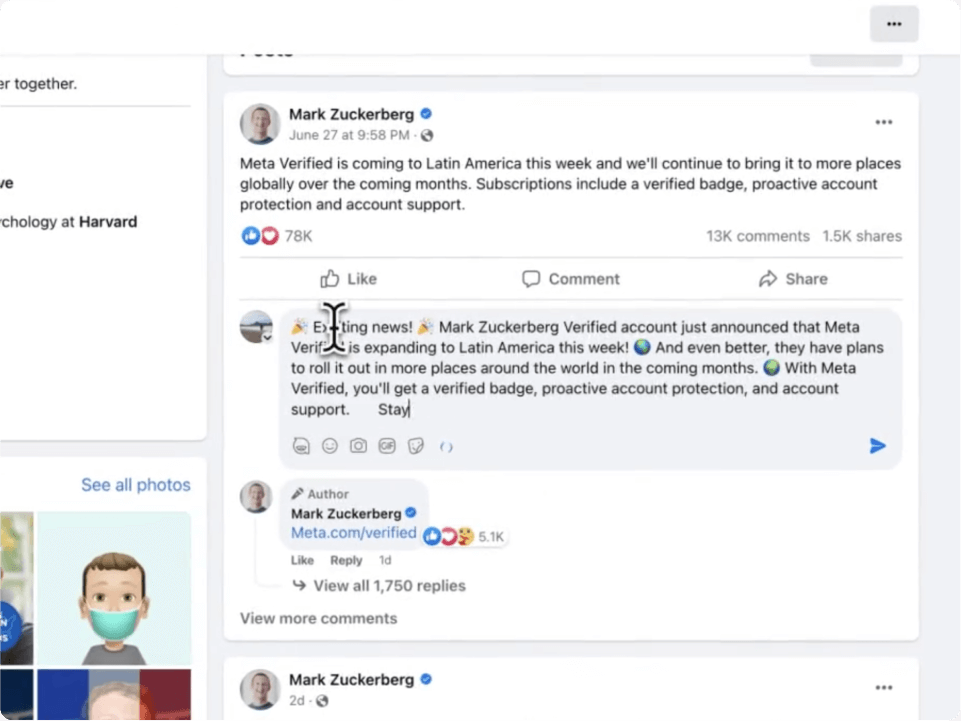 輸入 //以立即在Facebook上撰寫貼文和評論